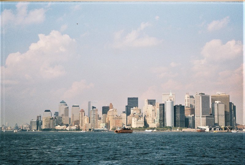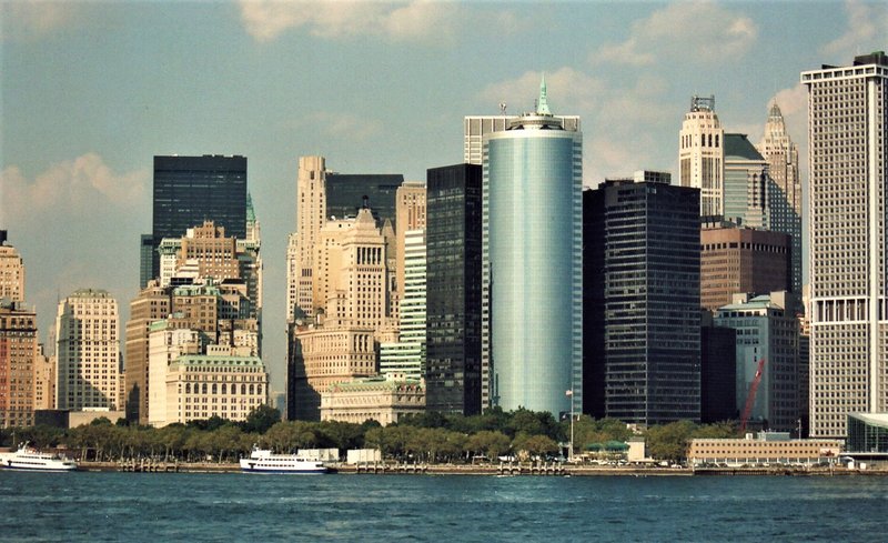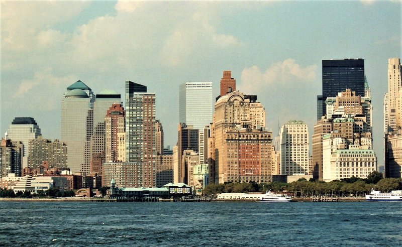 Vistas de las isla de Manhattan desde el ferry, y sus impresionantes rascacielos del Distrito Financiero. No os podéis perder este paseo en ferry porque tendrás una de las mejores vistas de la ciudad.