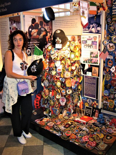 Entramos a un Memorial del 11-S donde se pueden ver muchos emblemas de los equipos de rescate que actuaron ese día, cascos, gorras, fotos y otros enseres del fatídico día que marco a la ciudad, al país y a la humanidad.
