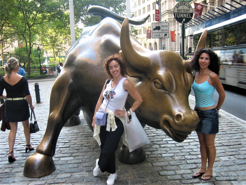 Y fuimos a conocer al Toro de Wall Street y a tocarle sus "partes nobles" que dicen que da suerte es una escultura de bronce que pesa tres toneladas y es el símbolo del sector financiero de la ciudad de Nueva York.