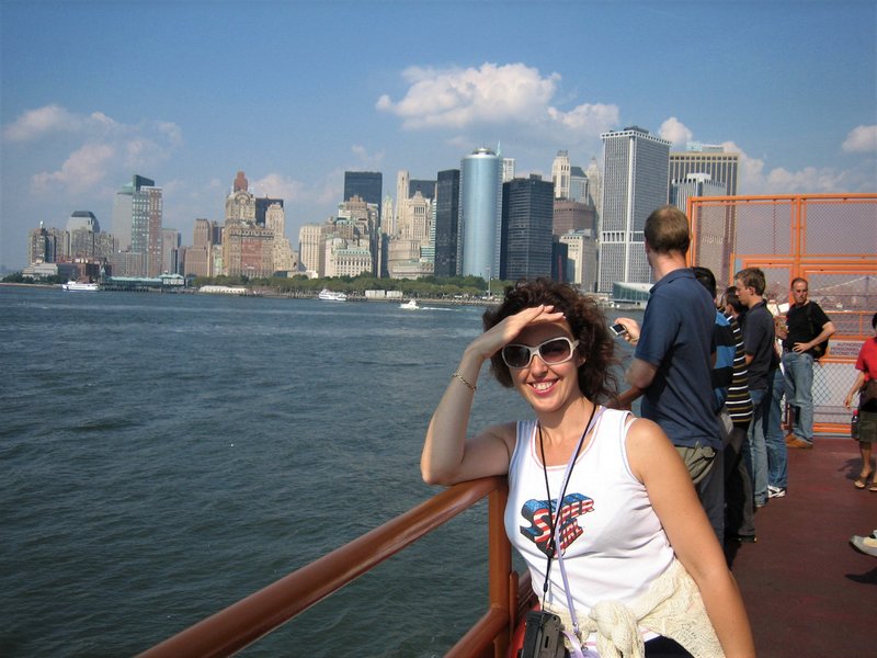 Aquí hay barcos para ir a ver la Estatua de la Libertad, nosotros cogimos un ferry que te lleva gratis, hoy día no se si seguirá existiendo. Mientras esperamos a que llegue el ferry, nos damos un paseo por los alrededores y nos hacemos varias fotos, algunas con Estatuas de la Libertad, que en esta zona abundan.