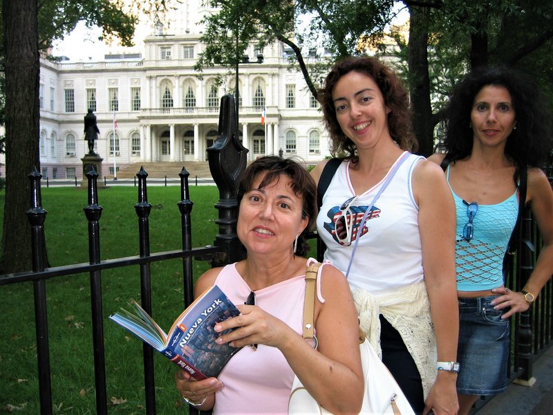Mi amigo y yo nos alojamos en cutrelandia, jajajajaja. Esas habitaciones tipo hostal de las películas americanas, con una recepción de un mueble rancio, un recepcionista más rancio todavía y que encima no nos entendía y eso que mi amigo hablaba un poco de inglés y ni por esas, unas escaleras enmoquetadas que no auguran un buen destino. El chico nos dio las llaves de la habitación, subimos al primer piso y al entrar. Dios mío, no era la que había reservado mi amigo por internet, nada que ver. A ver ahora como se lo explicamos al chico, si no nos entendió para darnos una llave, como nos va a entender esto, jajajaja. Bajamos, se lo decimos y nos dice que no tiene ninguna disponible, tócate esa, y???, al final nos quedamos a dormir ahí, mejor eso que buscar otra y perder dinero. No es que la habitación no fuera apta para dormir, sólo que era mucho más pequeña que la contratada y más "oscura", parecía un zulo, jajajaja, se salvaba un poco el baño que era de mármol aunque yo tenía que entrar a la ducha casi de lado y eso que en esta época estaba mucho más delgada, hoy día me hubiese quedado encasquillada, jajajaja. Superado todo esto, llamamos a mi hermana y acompañantes y concretamos un sitio para quedar, nuestro alojamiento no recuerdo exactamente la ubicación, pero sí que estaba cerca de Times Square, en la 7th/8th Avenida aproximadamente. Entre que llegamos a la ciudad, nos alojamos y quedamos para pasear, ya era prácticamente al mediodía.