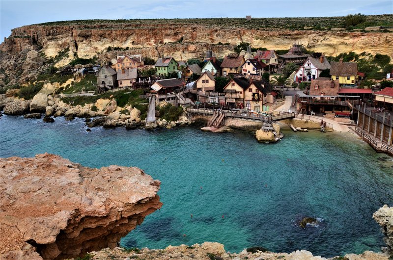 El pueblo de Popeye está situado en Anchor Bay, cerca de la ciudad de Mellieha y es una de las grandes atracciones de la isla de Malta.