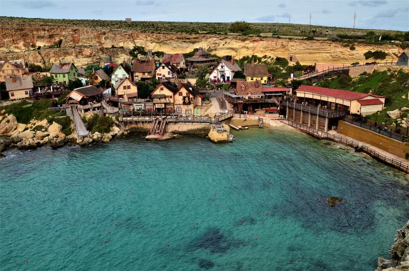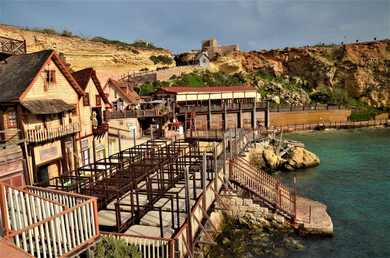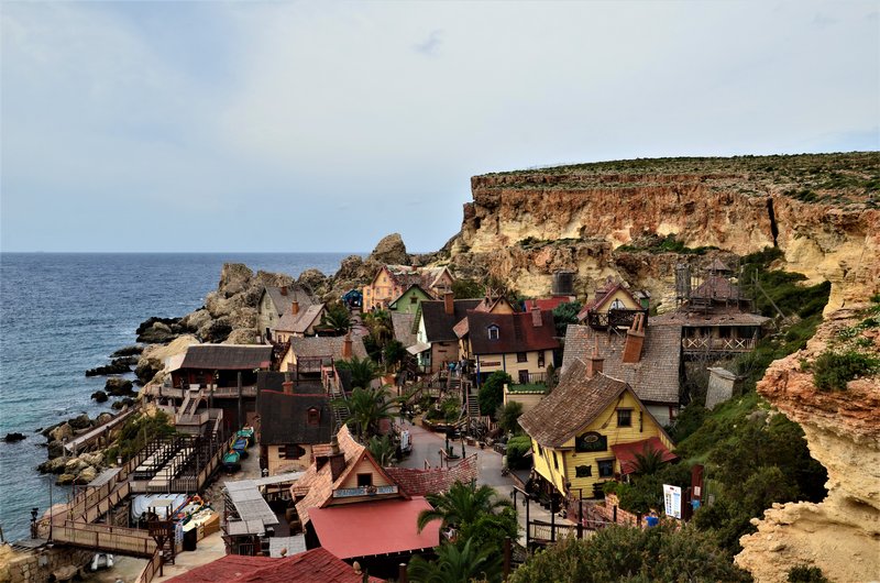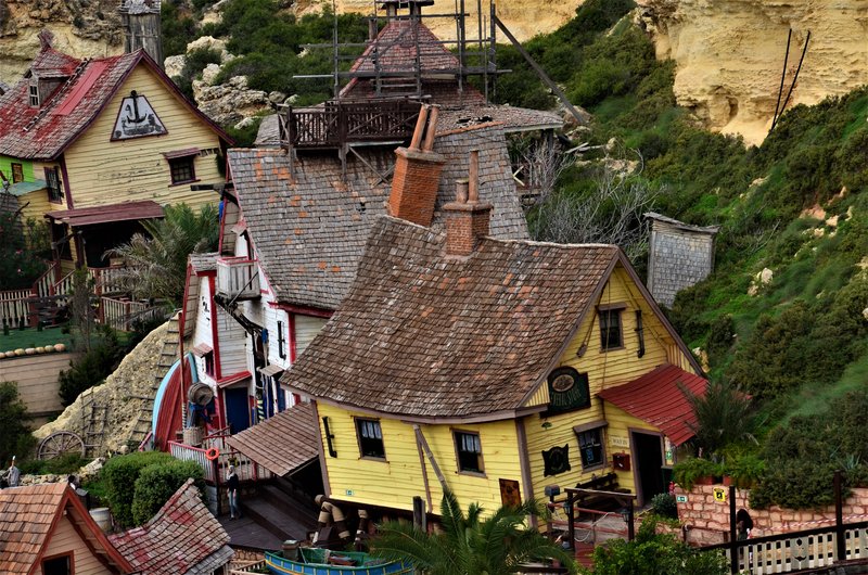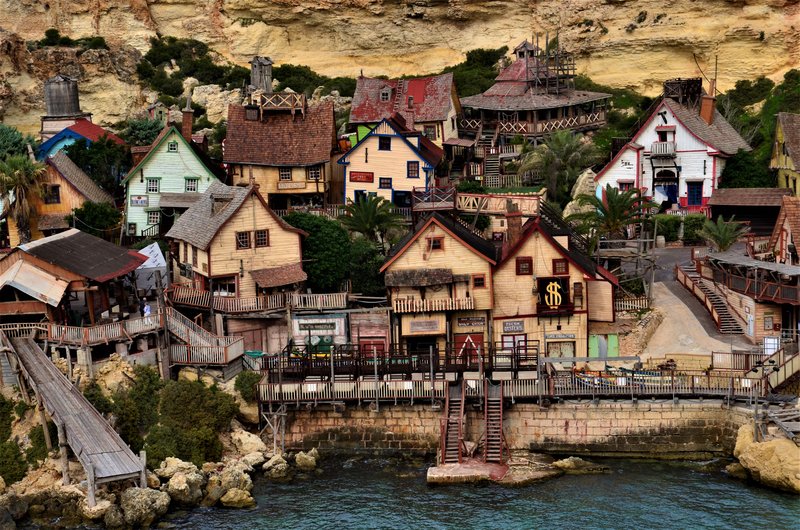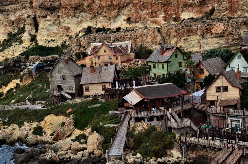 El “Popeye’s Village” es en realidad un plató cinematográfico creado exclusivamente para la película “Popeye” realizada por Robert Altman y protagonizada por Robin Williams en 1980. El plató creado por Paramount Pictures y Walt Disney Productions, después se convirtió en un museo al aire libre y en parque de atracciones. Está formado por 19 edificios de madera construidos en 1979 situados en Sweethaven, frente al mar, con madera traída de Canadá y de Holanda, puesto que en Malta no hay bosques. La idea era darle un aire al pueblo típico americano de los años 20. Incluso construyeron un enorme dique en Anchor Bay para proteger el lugar de la fuerza del mar.