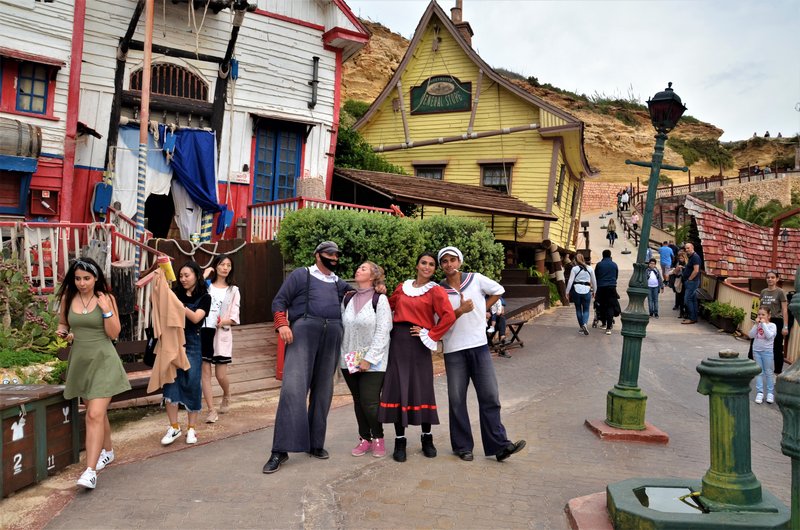 Podrás ver a los famosos personajes del comic, Popeye, Olivia, Bruto, Cocoliso, Pilón bailando y paseando por las calles y a mí posando con ellos, jajajajaja.