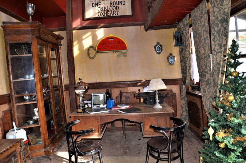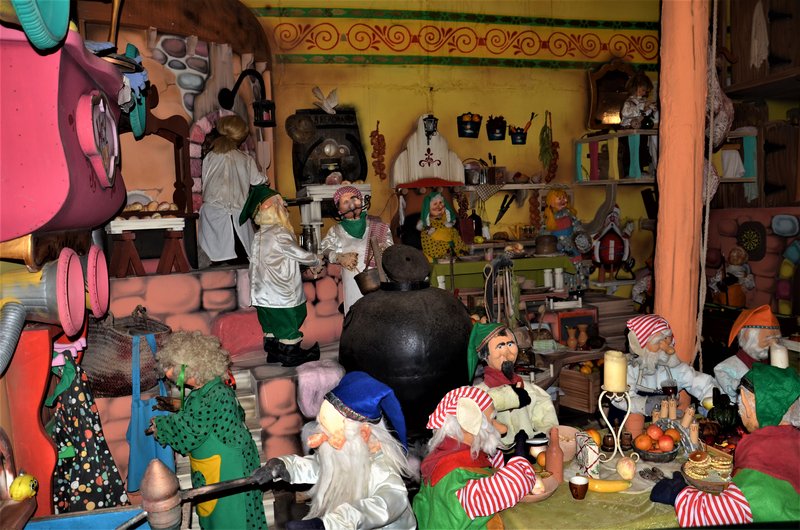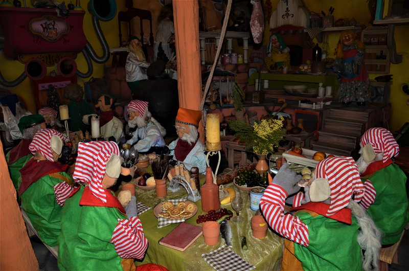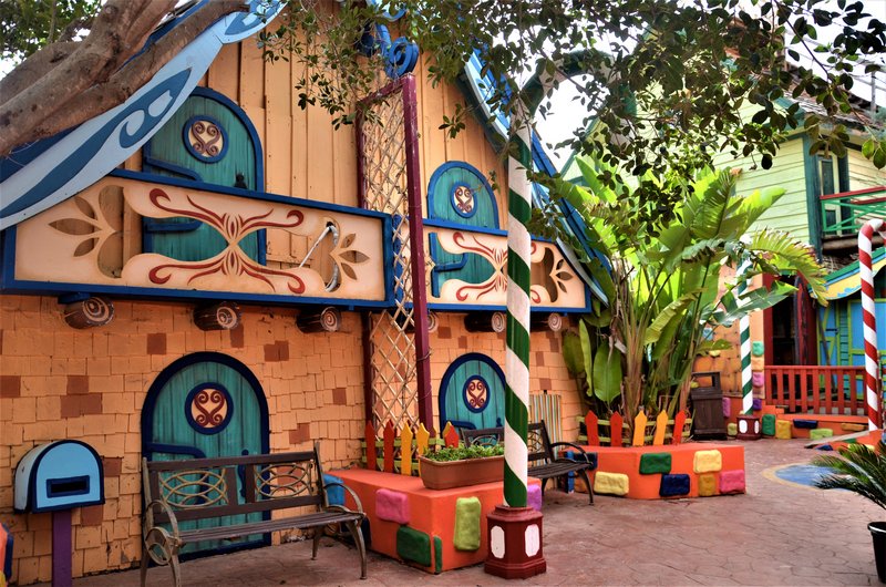 Para la construcción emplearon miles de tablones, 8 toneladas de clavos y 9000 litros de pintura para dar forma a este precioso pueblo. Tuvieron el detalle de prepararme la comida ya que son las 14:30h pasadas y el hambre aflora, me toca comer sola ya que Popeye está recibiendo a los visitantes, mientras me relajo en su casa